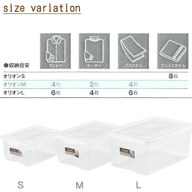 製品サイズ (約)幅30cm 奥行41.5cm 高さ19cm 製品内寸 (約)幅24.9cm 奥行33.7cm 高さ16.9cm 材質 ポリプロピレン 製品重量 (約)730g 収納目安 Yシャツなら4枚 セーターなら2枚 バスタオルなら4枚 組立て 完成品 関連商品 ・オリオン S ・オリオン L お届け 別途送料がかかります。
